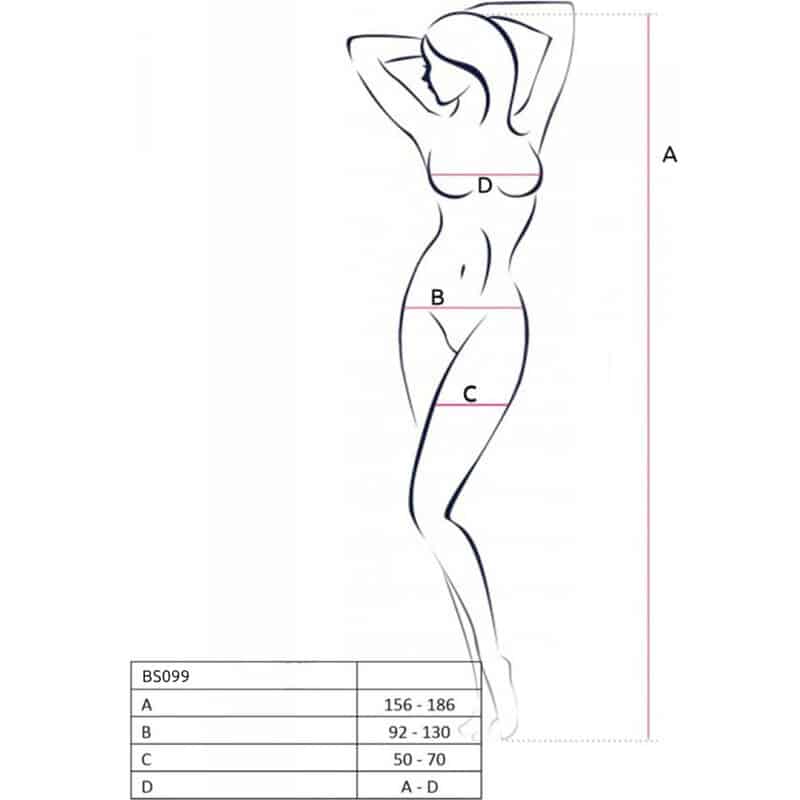 BS099 från Passion är en elegant bodystocking i svart, skapad för att framhäva kroppens former med en kombination av nät och spets. Designen har ett intrikat mönster som skapar en sofistikerad och förförisk look, perfekt för intima stunder.